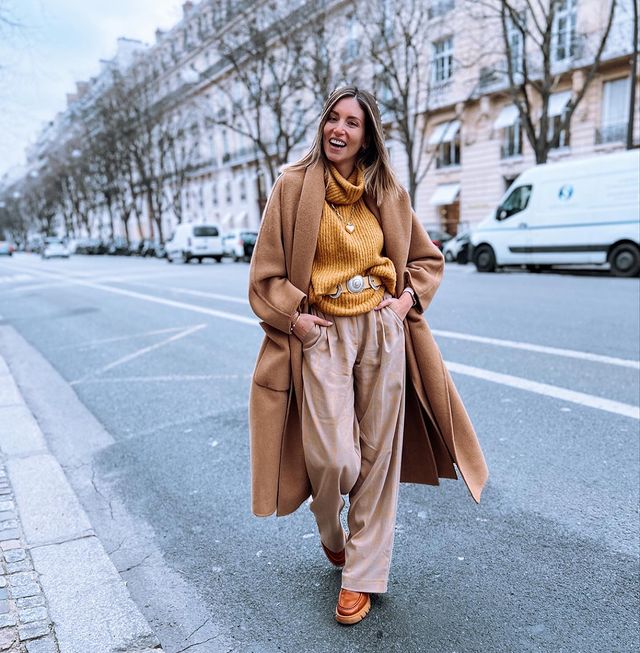 Στις διακοπές της η Οικονομάκου, στην μαγική πόλη του φωτός, έκανε μια εμφάνιση σε nude τόνους. Φόρεσε ένα ζεστό μπεζ παλτό, μαζί με καμηλό πλεκτό πουλόβερ, με ψηλό λαιμό και απαλό μπεζ φαρδύ παντελόνι. Στη μέση της φόρεσε μια ζώνη με ασημένια αγκράφα, για να τονίσει τη λεπτή σιλουέτα της και από παπούτσια καφέ oxfords, με ψηλό πάτο. Ένα χρυσό μενταγιόν με σχήμα καρδιάς κρέμεται από το λαιμό της.