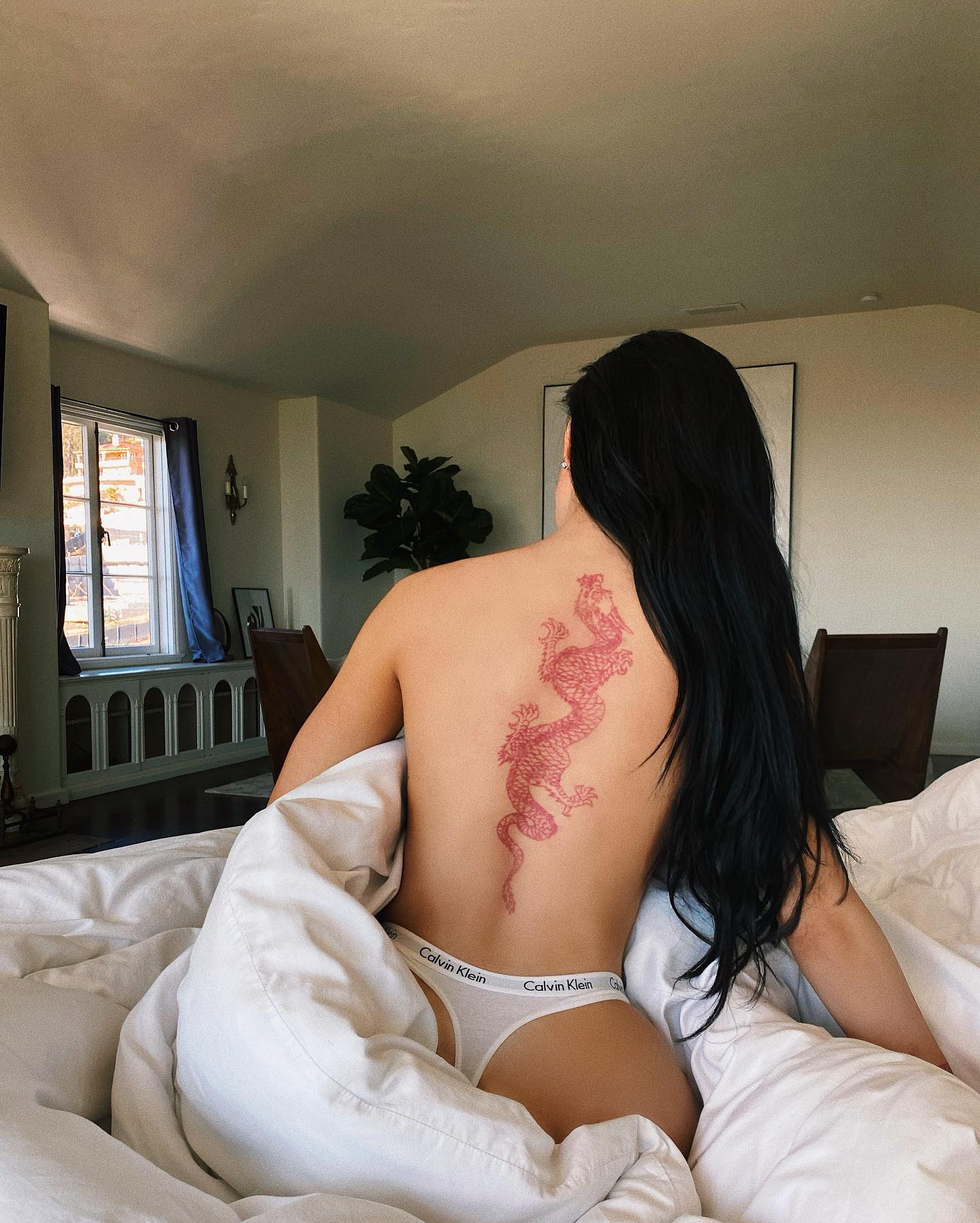 Όπως παραδέχτηκε, το τατουάζ της αποτελεί αντιγραφή του τατουάζ της Αμερικανίδας μοντέλου, influencer, YouTuber και make up artist Nikita Dragun. H τελευταία, η οποία μετρά πάνω από 9.100.000 ακόλουθους στο Instagram, έχει έναν μεγάλο, κόκκινο δράκο στην πλάτη της.