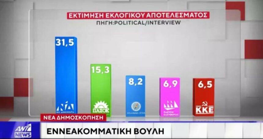 Η τελευταία έρευνα της Interview για την εφημερίδα Political αποτυπώνει τη νέα πολιτική ισορροπία που φαίνεται να διαμορφώνεται μετά την παραίτηση του Αλέξη Τσίπρα από τη Βουλή και τα σενάρια…