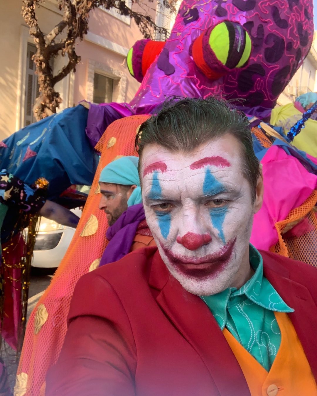 Το περασμένο Σαββατοκύριακο, ο 48χρονος ηθοποιός ντύθηκε Joker και γιόρτασε τις Απόκριες στα στενά του Μεταξουργείου με την ψυχή του!