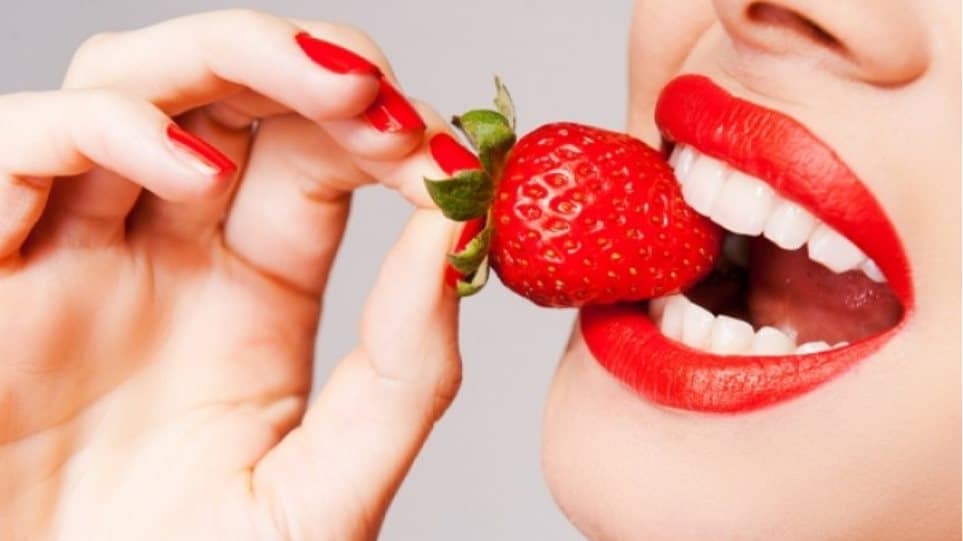 Φράουλες: Περιέχουν μαλικό οξύ, ένα ένζυμο το οποίο στην πραγματικότητα λευκαίνει τα δόντια καθώς απομακρύνει τις χρωστικές.