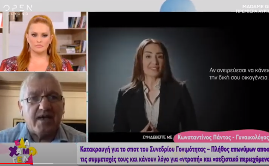 Για το περίφημο σποτ του Συνεδρίου Υπογονιμότητας στα Ιωάννινα, το οποίο έχει προκαλέσει σάλο αντιδράσεων και μαζική αποχώρηση υποστηρικτών του συνεδρίου, μίλησε στην εκπομπή «Έλα Χαμογέλα» ο γυναικολόγος Κωνσταντίνος Πάντος. Ο ίδιος υπεραμύνθηκε των προθέσεων όλων των διοργανωτών και κατέθεσε την άποψή του για το διαφημιστικό σποτ. «Το σποτ είναι όντως σκληρό, αλλά έλεγε την ωμή αλήθεια. Πέρασε από ΕΣΡ για έγκριση. Το ενέκρινε πολύς κόσμος και παίζει εδώ και 10 ημέρες σε τηλεοράσεις. Δεν δημιουργήθηκε σάλος» σημείωσε χαρακτηριστικά ο κ. Πάντος.