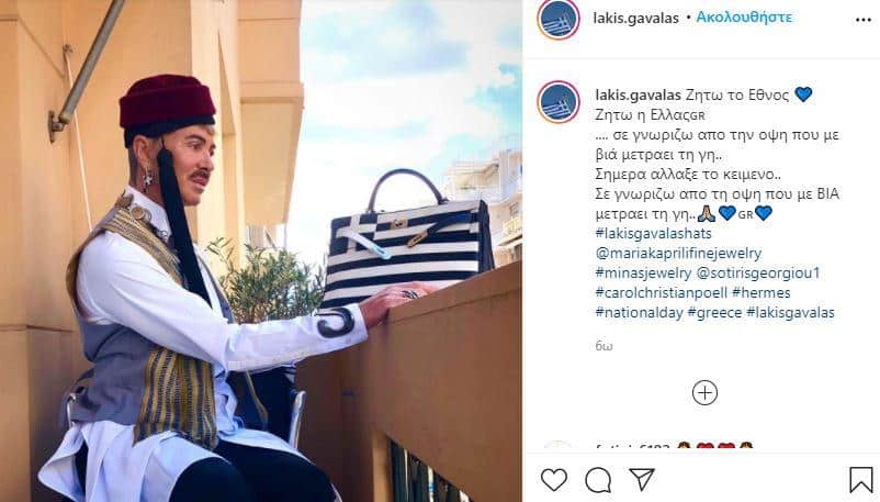 Κάθε 25 Μαρτίου και 28 Οκτωβρίου ο Λάκης Γαβαλάς βγάζει την συλλεκτική και πανάκριβη τσάντα Hermes με την Ελληνική σημαία που ο γνωστός οίκος έφτιαξε ειδικά για αυτόν!