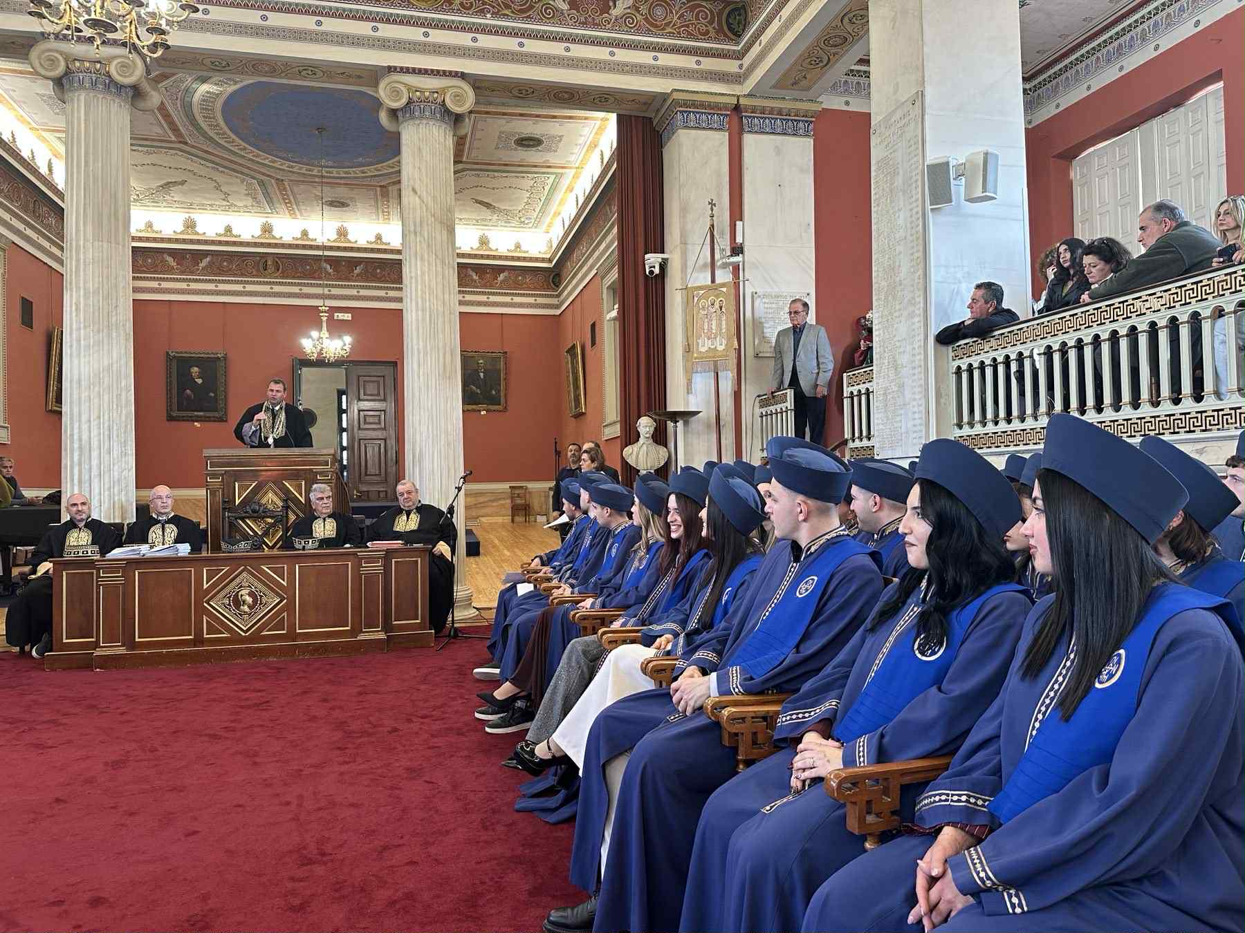 Η τελετή έλαβε χώρα το μεσημέρι της Πέμπτης, 19 Δεκεμβρίου 2025, στις 13:00, στη Μεγάλη Αίθουσα του κεντρικού κτίριο του ΕΚΠΑ στην Αθήνα, μέσα σε εορταστική ατμόσφαιρα, με την παρουσία ακαδημαϊκών, συγγενών και φίλων που χειροκρότησαν τους αποφοίτους σε μια από τις σημαντικότερες στιγμές της ζωής τους.
