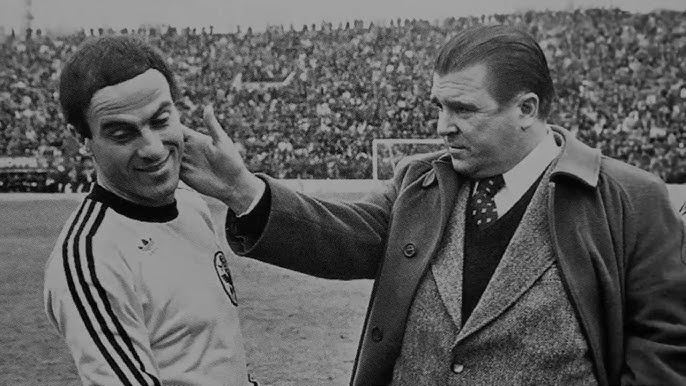 Στη φωτογραφία της εποχής, ο Φέρεντς Πούσκας, τότε προπονητής της ΑΕΚ, φαίνεται να καθοδηγεί τον Δομάζο πριν την έναρξη του αγώνα. Ο θρυλικός Ούγγρος προπονητής ήξερε ότι η ψυχολογική πίεση στον έμπειρο μεσοεπιθετικό θα ήταν τεράστια.