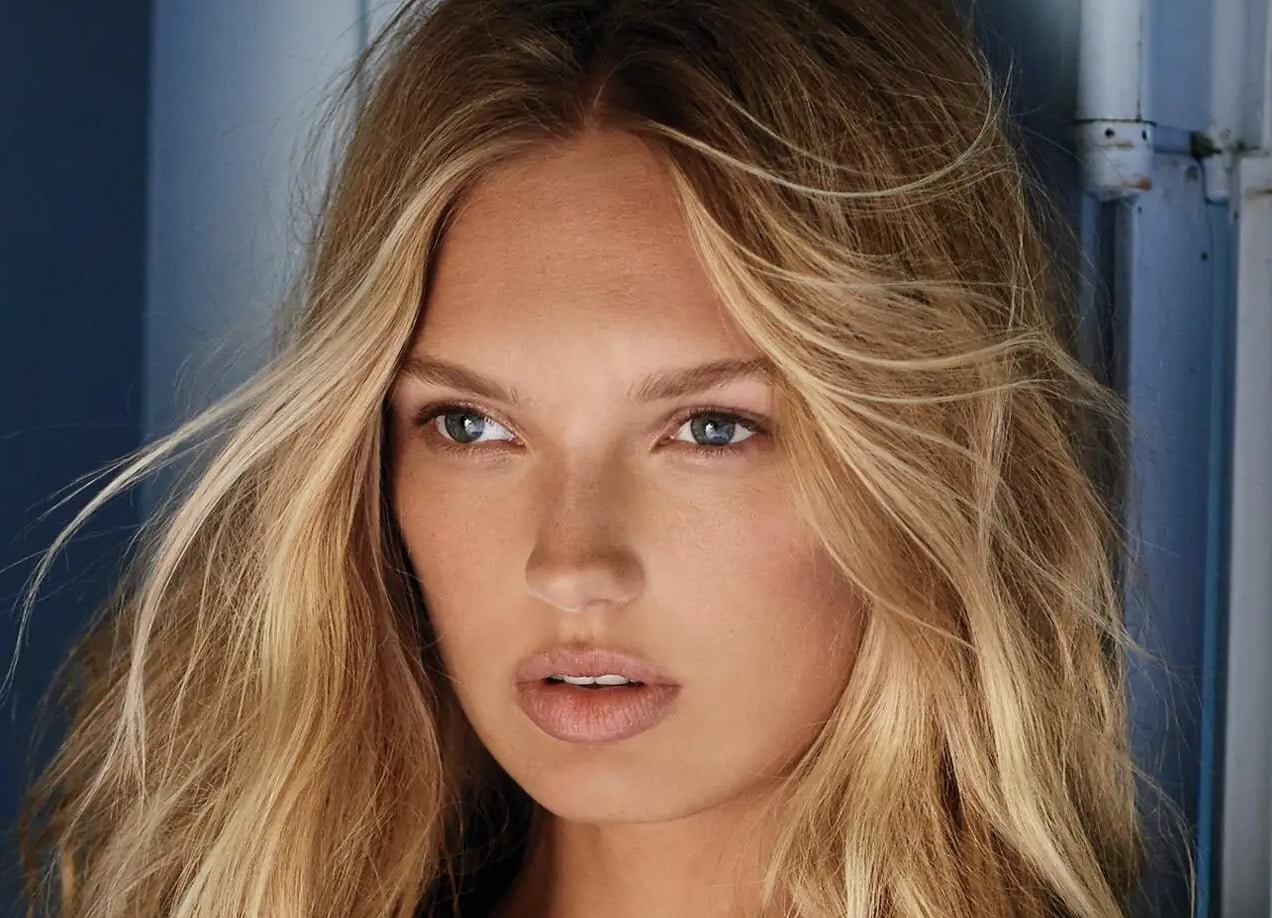 Το crop top κολακεύει το πλούσιο στήθος της, ενώ τα μακριά μαλλιά της πέφτουν στην πλάτη και το στήθος της, σχηματίζοντας ανάλαφρους κυματισμούς.