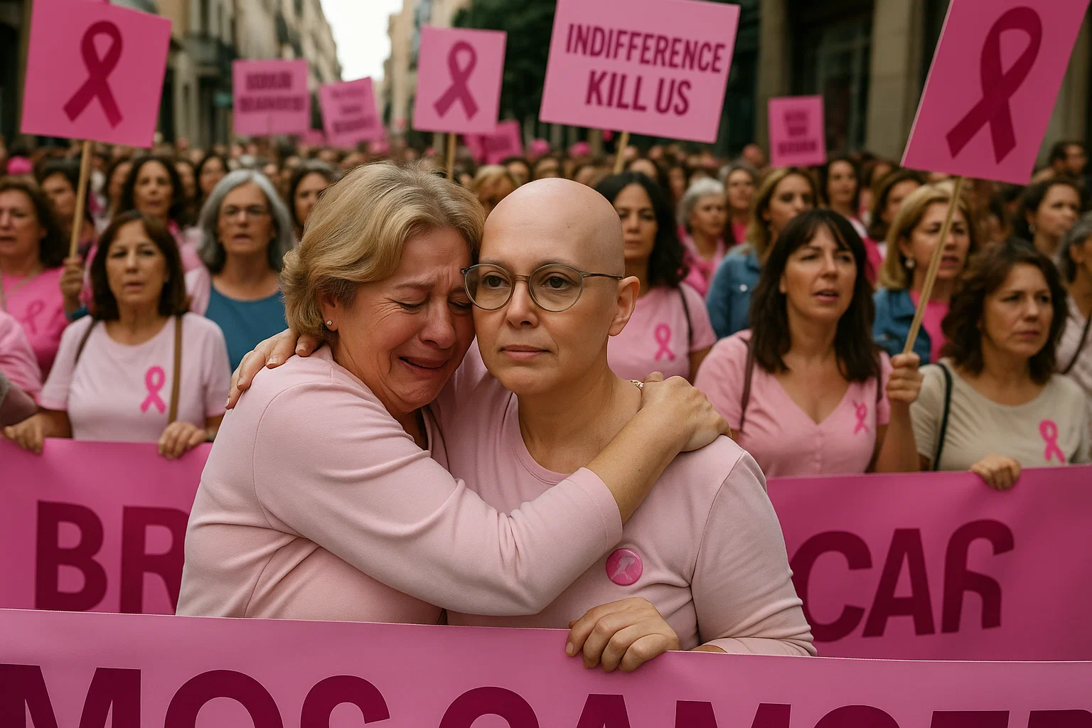 Η οργή ξεχείλισε. Χιλιάδες γυναίκες βγήκαν στους δρόμους της Σεβίλλης, της Μάλαγας και άλλων πόλεων της Ανδαλουσίας, κρατώντας ροζ πανό με συνθήματα όπως «Η αδιαφορία σας μας σκοτώνει». Οι διαδηλώσεις πήραν γρήγορα μαζικό χαρακτήρα, με γυναίκες που έχουν βιώσει τον καρκίνο του μαστού να ζητούν δικαιοσύνη και διαφάνεια.Σε μια συγκινητική στιγμή, γυναίκα που είχε υποβληθεί σε διπλή μαστεκτομή αγκάλιασε και φίλησε άλλη ασθενή με καρκίνο, συμβολίζοντας την ενότητα και την οδύνη χιλιάδων Ισπανίδων.