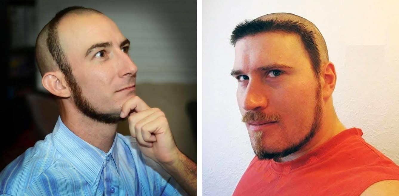 Τα συγκεκριμένα looks που βλέπουμε στις φωτογραφίες είναι κάτι σαν combo έκπληξη-ένα μείγμα από circle beard και “φαλάκρα με σχέδιο”, που μοιάζει σαν να έγινε με χάρακα και πολύ θάρρος.