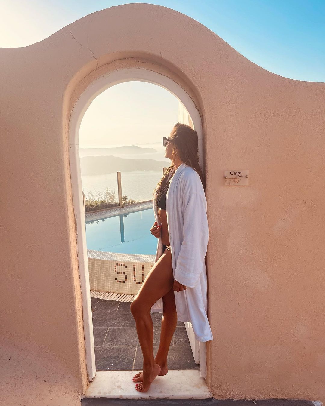 Η Βίκυ βομβαρδίζει τα social media με εκπληκτικές φωτογραφίες της φορώντας μαγιό, απολαμβάνοντας τον ήλιο και τη θάλασσα της Ελλάδας. Την είδαμε να ποζάρει δίπλα στην πισίνα, ναακουμπάει ελαφρά σε τοίχους και να απολαμβάνει τη φανταστική θέα του Αιγαίου από τη Σαντορίνη.
