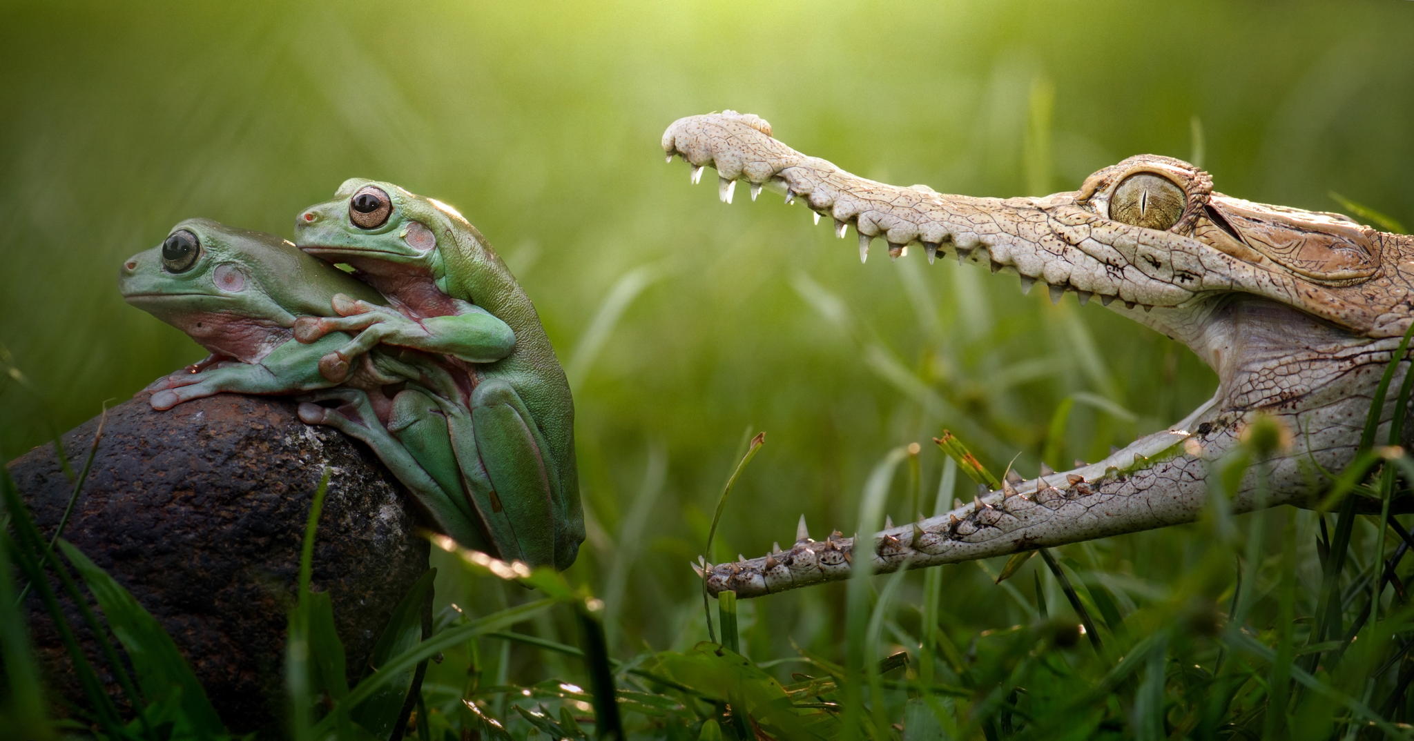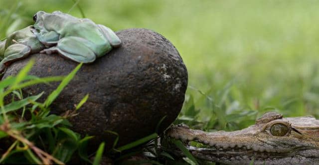 Έτσι έγινε στην περίπτωση δύο μικρών βατράχων που θέλησαν να ζήσουν μοναδικές ερωτικές στιγμές, δίχως όμως να υπολογίζουν στον πρώτα… ηδονοβλεψία και έπειτα «κανίβαλο» και πανούργο κροκόδειλο.